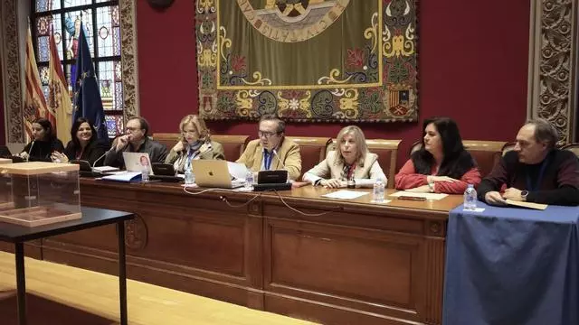 Rosa Bolea y parte de su equipo, este jueves en el Paraninfo de la Universidad de Zaragoza. / UNIVERSIDAD DE ZARAGOZA