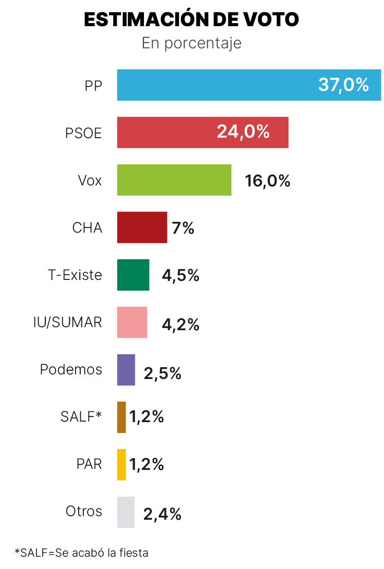Encuesta de EL PERIÓDICO: El PP ganaría las elecciones en Aragón pero solo podría gobernar con Vox