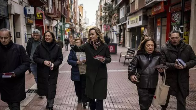 Pilar Alegría, candidata del PSOE, pasea por la calle Delicias, este lunes. / MIGUEL ANGEL GRACIA