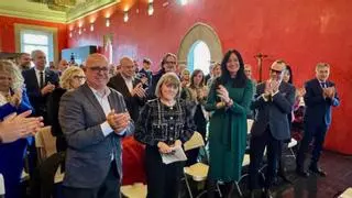 Arbués posa con el galardón junto a la alcaldesa Orduna. | AYUNTAMIENTO DE HUESCA