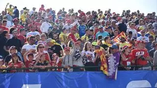 Ayer no se cayó y rugió la grada de récord, con 70.541 espectadores, cuatrocientos y pico más que el año del debut. Tiene mucho mérito, en este sentido, el éxito sostenido de Motorland, que ha superado la crisis batiendo sus mejores marcas en las dos últimas ediciones del evento. Hace un año batía su plusmarca de 116.931 asistentes en todo el fin de semana, que correspondía también al 2010. Sumó casi 400 personas más en el recinto, una cifra que esta vez le negó el viernes. La lluvia del primer día dejó a la gente en casa, así que el total se quedó en 113.447.