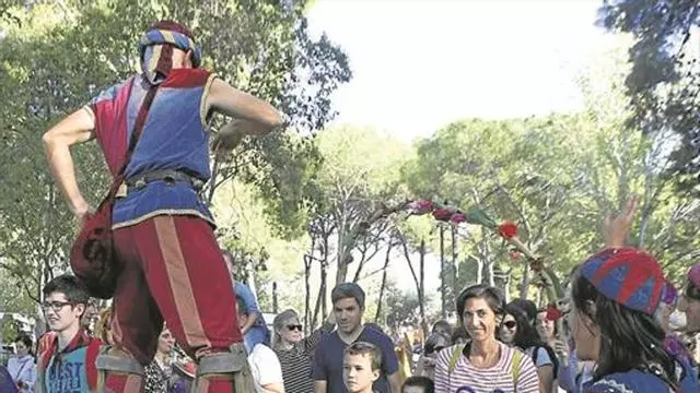 La música de gaita guió al personal por debajo del aro de flores y por las piernas del zancudo hacia la zona de la artesanía, libros y talleres de papiroflexia o el puesto de los Títeres sin cabeza con unas divertidas mascarillas de cerdito. Eso, mientras el grupo bailaba hacia la izquierda, hacia la derecha, al centro...