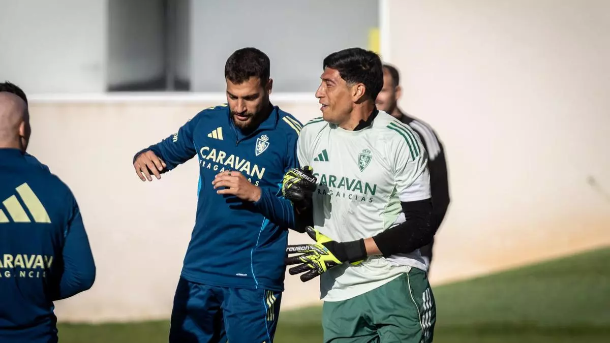 Bakis y Andrada en un entrenamiento del Real Zaragoza. / MIGUEL ÁNGEL GRACIA