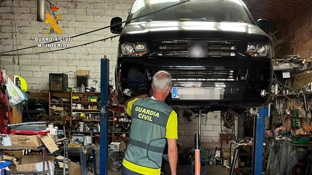 Estas sospechas se confirmaron con la inspección del taller. Un establecimiento ubicado en el interior una nave de crianza de conejos en desuso. El taller ilegal estaba acondicionado para la reparación de automóviles y maquinaria agrícola, dotada de instrumentación y herramientas profesionales, un elevador, un compresor, un generador, una grúa móvil de motores, una carreterilla, y toda clase de herramientas necesarias para llevarlo a cabo trabajos compatibles con los de un taller de mecánico de reparaciones de automóviles. Durante la inspección se pudo observar en la instalación a diez vehículos estacionados (alguno de ellos con daños de consideración).