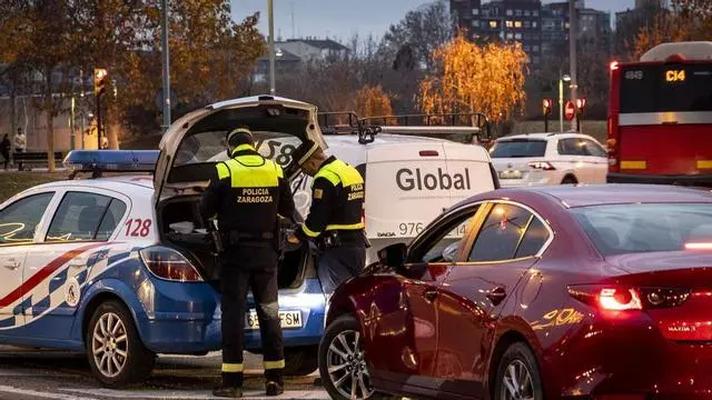 Imagen de recurso de un control de la Policía Local en Zaragoza durante la pasada Navidad. / MIGUEL ÁNGEL GRACIA