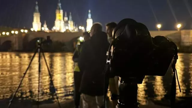 Medición de la contaminación lumínica de Zaragoza, con el Pilar de fondo. / AYUNTAMIENTO DE ZARAGOZA