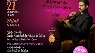 Como previa a los festejos Navideños, la Banda Municipal de Música de Gallur ofrecerá un concierto acompañada del trompetista Rubén Simeó, quien hace un alto en su tour para ofrecer a vecinos y visitantes con su emocionante show.